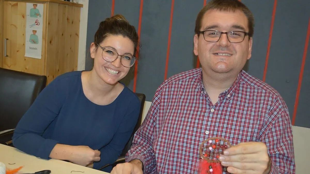 Diese Idee war eine, die auch dem Team von Ernst & Young vom Standort Klagenfurt gefallen hat. So sitzen nun vier Mitarbeiterinnen des Wirtschaftsprüfungsunternehmens mit KlientInnen und BetreuerInnen um den großen Tisch in der Tagesstätte und gestalten bunte Traumfänger. Federn, Fäden und Garne und jede Menge bunter Perlen liegen herum. Birgit Leschanz von EY, die das Projekt firmenintern auch vorbereitet hat, werkt gemeinsam mit Michael. Sie haben ihren Traumfänger schon fast fertig, ihn zieren blaue und türkise Federn und rote Perlen.
