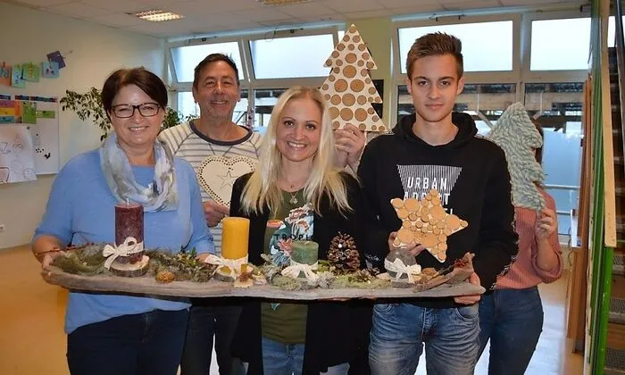 Unter Anleitung je eines Jugendlichen wird im Teamwork an drei Stationen Vorweihnachtliches gestaltet: Hier entsteht ein nicht-klassischer Adventkranz – eine „nicht gerade Kurve“, wie es einer der Burschen lachend formuliert. Daneben werkt ein Team daran, eine Krippe aus Naturmaterialien zu basteln. „Alles haben wir mit den Kindern selbst gesammelt“, erzählt Stephanie Grader. Sie ist Sozialbetreuerin im KIZ und hat den Nachmittag gemeinsam mit Vanessa Papst von der Sparkasse vorbereitet. Und wieder einen Tisch weiter sitzen Adalbert Holzfeind und Tomas Zlanabitnig mit einem Mädchen vom KIZ und basteln Adventdekoration in Form von Tannenbäumen, Herzen und Sternen zum Aufhängen. „Viel Spaß macht es“, lacht der Bursche auf die Frage, wie denn der Nachmittag heute sei. Denn nicht immer sei es so spaßig, aber heute schon.