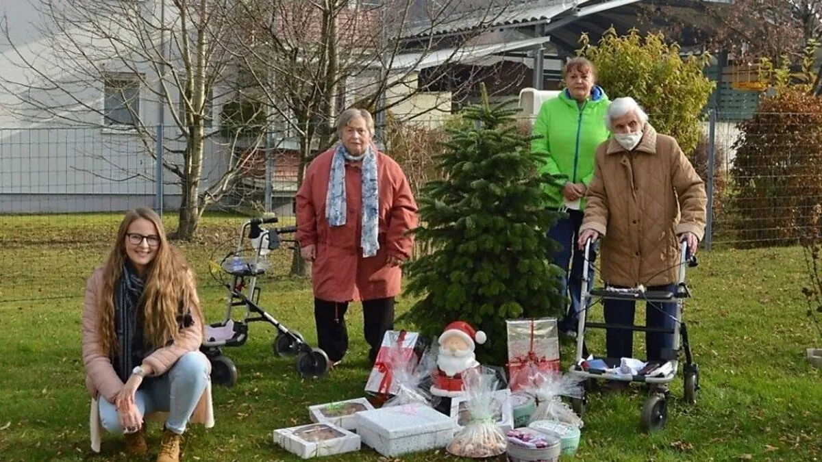 Unter der kleinen Tanne im Garten des Altenheimes in Maria Gail liegen viele Schachteln und große bunte Dosen voller Schätze. Süße Schätze, die den Bewohnerinnen und Bewohnern des Hauses heuer in der so schwierigen Zeit den Eintritt in den Advent versüßen sollen und im Rahmen einer Leseandacht mit Adventfeier am Sonntag im Haus verkostet werden. Ramona Schwarzl von EY, die das Keksbackprojekt innerhalb des Wirtschaftsprüfungsunternehmens koordiniert hat und Bernadette Jakl, mit ihnen zwei Bewohnerinnen, die stellvertretend für die 81 BewohnerInnen die Kekse in Empfang nehmen, haben sich zu einer kleinen Übergabefeier zusammengefunden.