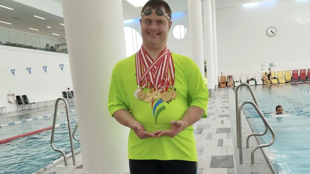 Anfang des Monats fanden in Spittal an der Drau die Staatsmeisterschaften im Behindertenschwimmen statt. In der Klasse DS21 (Down Syndrom Klasse) erreichte Gernot Platzer fünf Mal den ersten Platz und einmal den zweiten Platz und konnte sich so über sechs neu hinzugekommene Medaillen freuen. Nur drei Profis stehen im Gesamtmedaillenspiegel vor ihm. „Seit 20 Jahren schwimmt Gernot aus gesundheitlichen Gründen und aus purem Spaß an der Freude. Im Italienurlaub wurden wir dann von einer Schwimmtrainerin angesprochen, ob er nicht professionell schwimmen möchte, da er eine gute Wasserlage hat“, erzählt der stolze Papa Haimo Platzer (83).