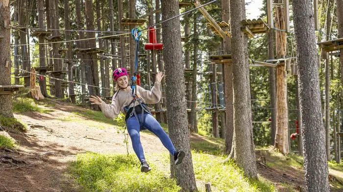 Flying Fox, Riesenschaukel, Baumtreppen und ab heuer neun Löcher am Minigolf-Platz. Das alles bietet der Adventurepark auf der Gerlitzen Alpe. Bei einem Selbstversuch wird schnell klar: Der Name ist Programm. Denn auf 4000 Quadratmeter ist der größte Waldhochseilgarten Kärntens angesiedelt und ab heuer mitsamt Minigolf-Platz im Wald. Dieses Wochenende, dem 25. und 26. Mai, startet Eigentümer Thomas Valtiner in seine zweite Saison und bietet Teambuildings, Geburtstagsfeiern, Einzelherausforderungen und Familienausflüge. „Die 31 Flying Foxes sind definitiv die Hauptattraktion auf dem Areal“, sagt Valtiner.