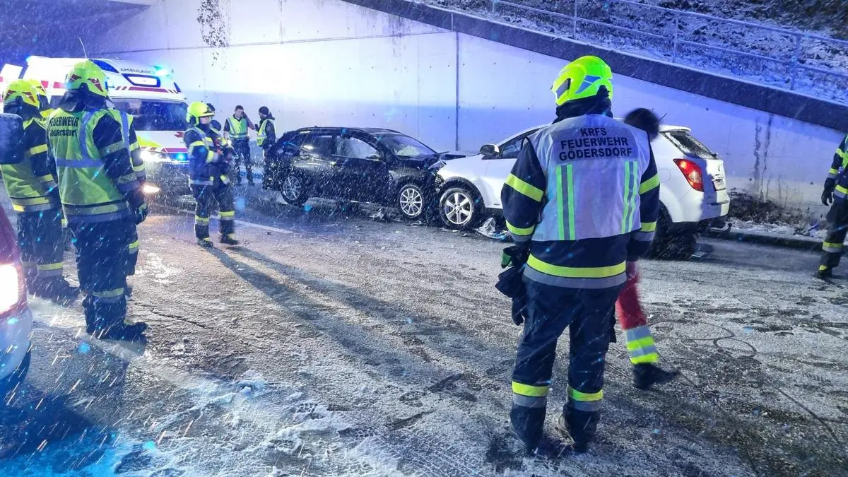 Zu zwei Einsätzen, ebenfalls im Schnee und nur ein paar Kilometer weiter auf der Südautobahn, musste am Heiligen Abend die FF Wernberg ausrücken: Um die Mittagszeit ereignete sich ein Serienunfall, kurz nach 18 Uhr kam im Bereich der Autobahnauffahrt ein Lkw von der Fahrbahn ab.