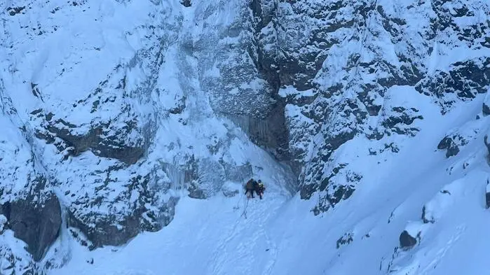 Die Alarmierung kam über die Flugeinsatzstelle Klagenfurt: In der Prisojnik Nordwand in Slowenien sind am Samstagnachmittag zwei Eiskletterer abgestürzt. Bei den beiden soll es sich um Slowenen, einen Mann und eine Frau, handeln. Für eine rasche Bergung wurde die ARA Flugrettung alarmiert. „Wir sind von Fresach aus gestartet und waren binnen 15 Minuten vor Ort“, sagt ARA-Geschäftsführer Thomas Jank. Nach einem kurzen Erkundungsflug konnte die Besatzung des Rettungshubschraubers die Verunfallten ausfindig machen.
