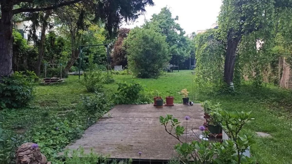 Ein Garten mit altem Baumbestand und vielen Pflanzen