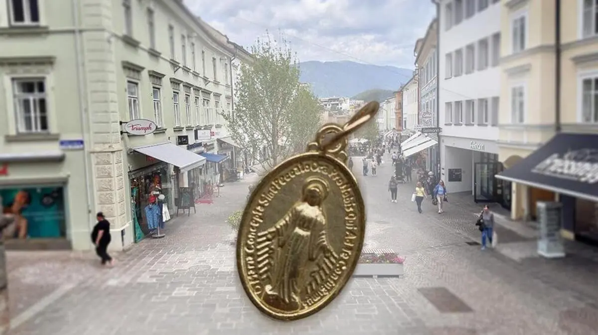Eine Villacher Straßenmusikerin entdeckte nach ihrem Auftritt zwischen Münzen einen Marienanhänger. Nun sucht sie im Netz nach der Person, die ihn in ihren Gitarrenkoffer gelegt hat.