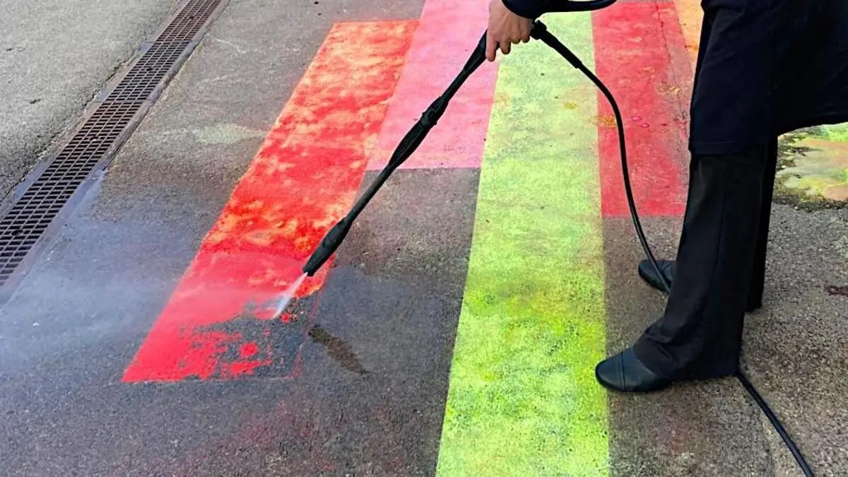 Debatte um Kunst im öffentlichen Raum: Eine Kreidezeichnung vor den „schau.Räumen“ in Villach musste nach Kritik entfernt werden.