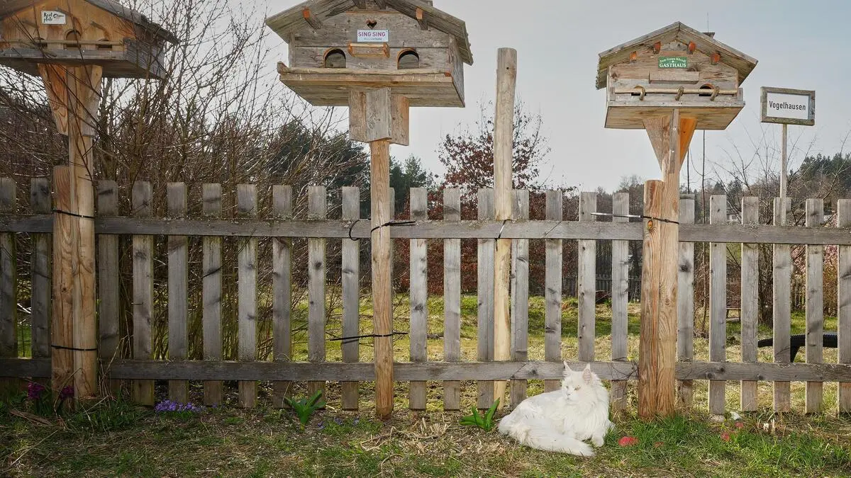 Über die Prachthäuser der Gimpel, Buntspechte und Stieglitze herrscht Maine-Coon Findus. Die rund 100 Kilogramm Futter pro Jahr kommen aber von Frauchen Sandra Joainig-Essenther und ihrem Mann Albert