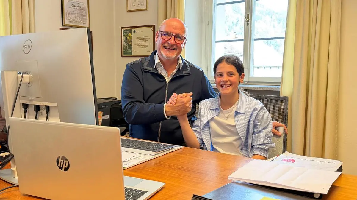 Antonia Steiner (13) ist für zwei Tage „Minibürgermeisterin“ in Treffen. An der Seite von Bürgermeister Klaus Glanznig sammelt sie praktische Erfahrungen im politischen Alltag.