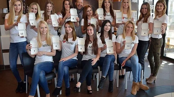 Die 14 Kandidatinnen für die Misswahl kamen zur Auslosung ihrer Startnummern in die McDonald's-Filiale nach Maria Gail. Die Villacherinnen schreiten am 17. April gleich zu Beginn auf den Laufsteg.