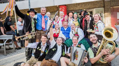 Kirchtag ist in Villach. Und am Donnerstag haben die Kirchtagslader der Bauerngman im Redaktionsbüro vorbeigeschaut. Mit vielen Gästen aus Politik und Wirtschaft wurde getanzt und nebenbei verfolgte man das EM-Damen-Halbfinale unserer Damen.