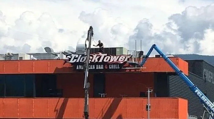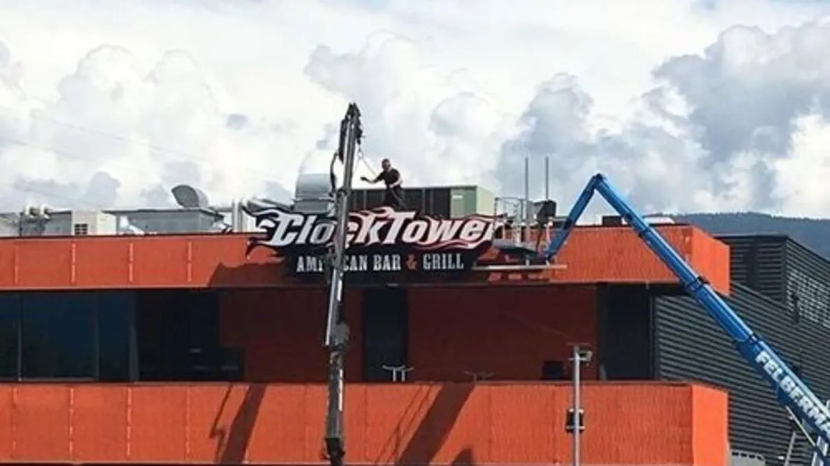 Das "Clocktower" in Villach steckt in seinen letzten Zügen. Heute, Mittwoch, wurde das Logo abmontiert. Was mit dem Leerstand passieren wird, ist noch unklar.