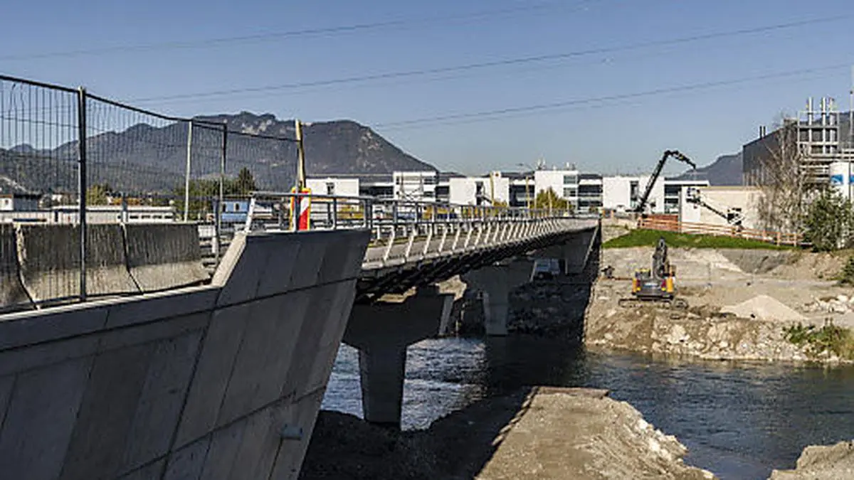 Rund 4,4 Millionen Euro wurden in den Bau der Brücke mit Geh- und Radwegkonstruktion investiert. Auch erster Teil der Völkendorfer Straße wird noch heuer fertig.