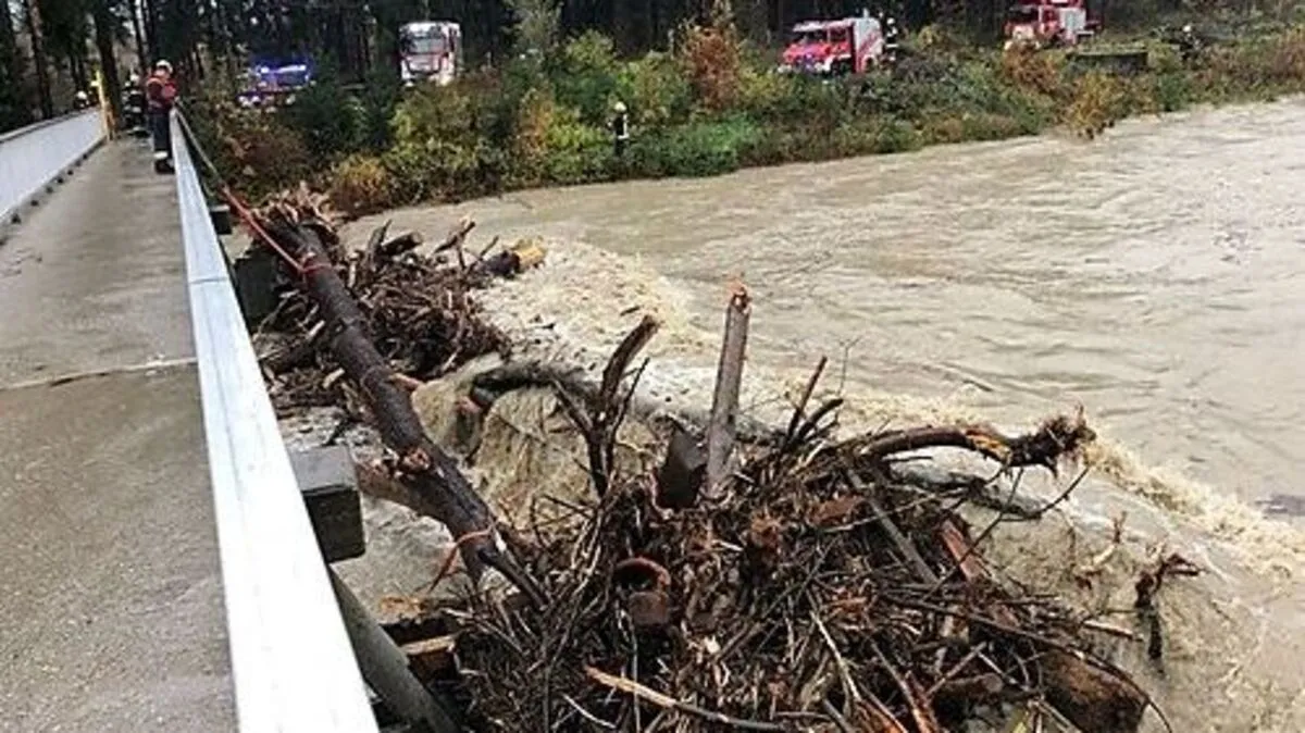 Die Feuerwehr kämpfte in Villach gegen Verklausungen bei der Gail-Fußgängerbrücke. Rettung in letzter Sekunde.