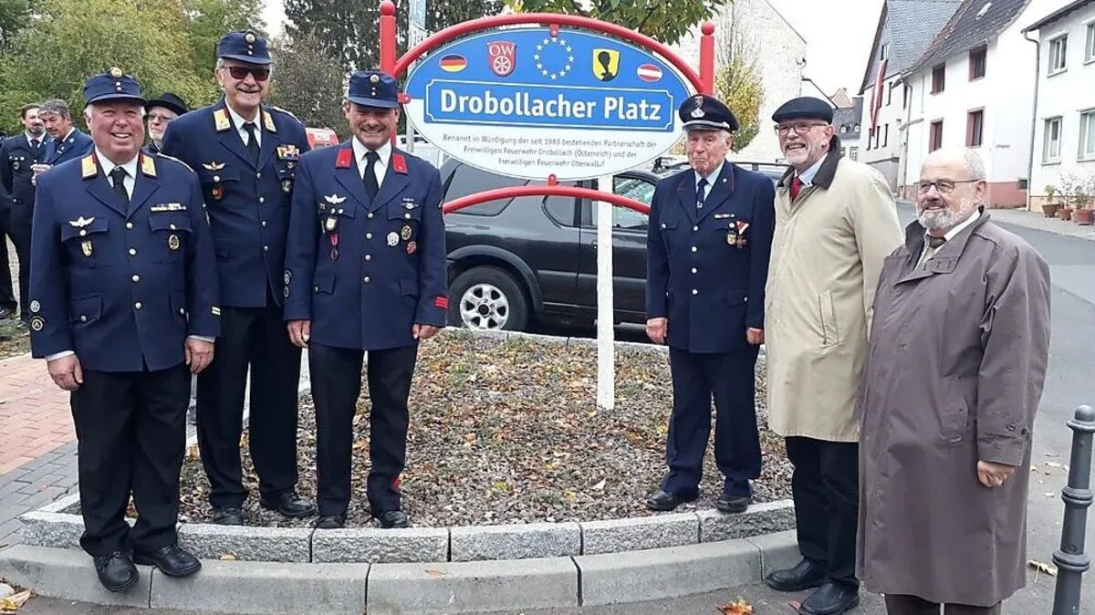 Die Feuerwehren von Drobollach und Oberwalluf feiern 35 Jahre Partnerschaft. Zum Jubiläum wurde der Drobollacher Platz im deutschen Hessen feierlich eröffnet.