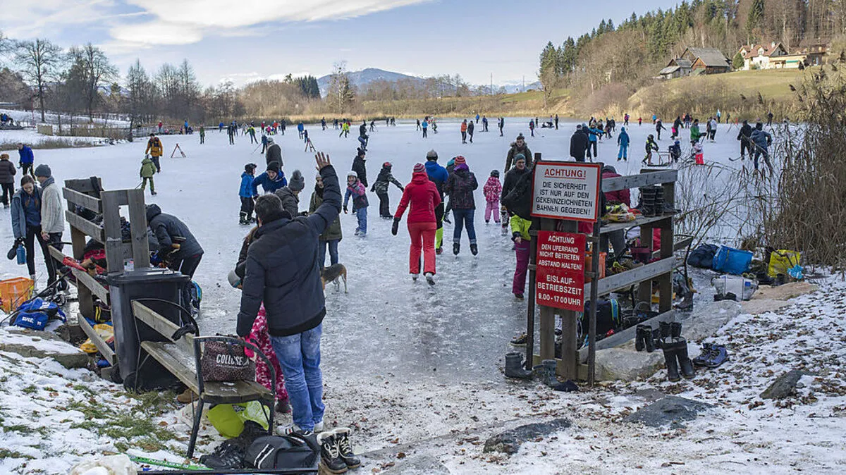 Seit Freitag 9 Uhr ist der Aichwaldsee fürs Eislaufen freigegeben. Hunderte Eisläufer ließen sich nicht zwei Mal bitten und kurvten übers spiegelglatte Eis.