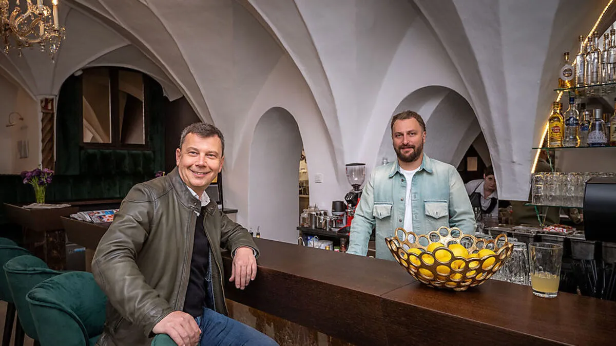 Die neuen Eigentümer Andreas Hofmayer und Hansjörg Kofler präsentieren stolz die neue Bar im Eingangsbereich