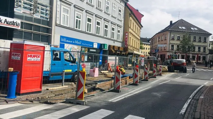 In der Villacher Bahnhofstraße werden derzeit die Wasserleitungen saniert. Im Anschluss werden auch noch Leerverrohrungen für den Ausbau des Breitband-Netzes verlegt.