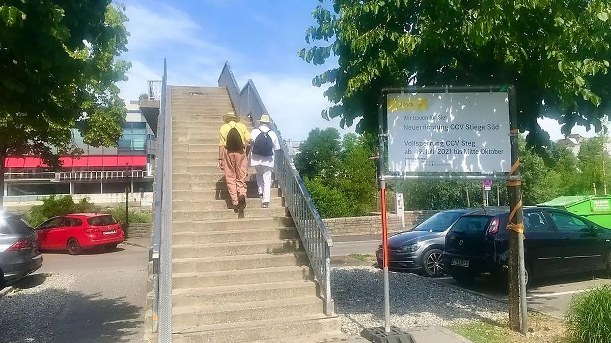 Weil an der Stiege der CCV-Fußgängerbrücke Mängel festgestellt wurden, muss diese saniert werden. Baustart ist bereits am 19. Juli.