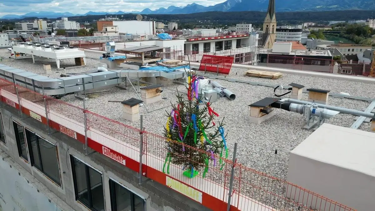 Gleichenfeier eines der größten Bauprojekte in der Villacher Innenstadt. In der Bahnhofstraße sollen wohnen, arbeiten und einkaufen unter einem Dach Platz finden.
