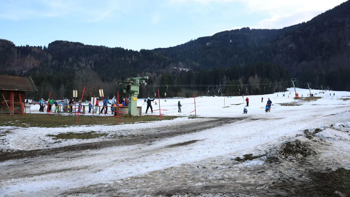 Das Dreiländereck hat als erstes Skigebiet Kärntens Lifte wegen Schneemangels eingestellt. Ein Lokalaugenschein.