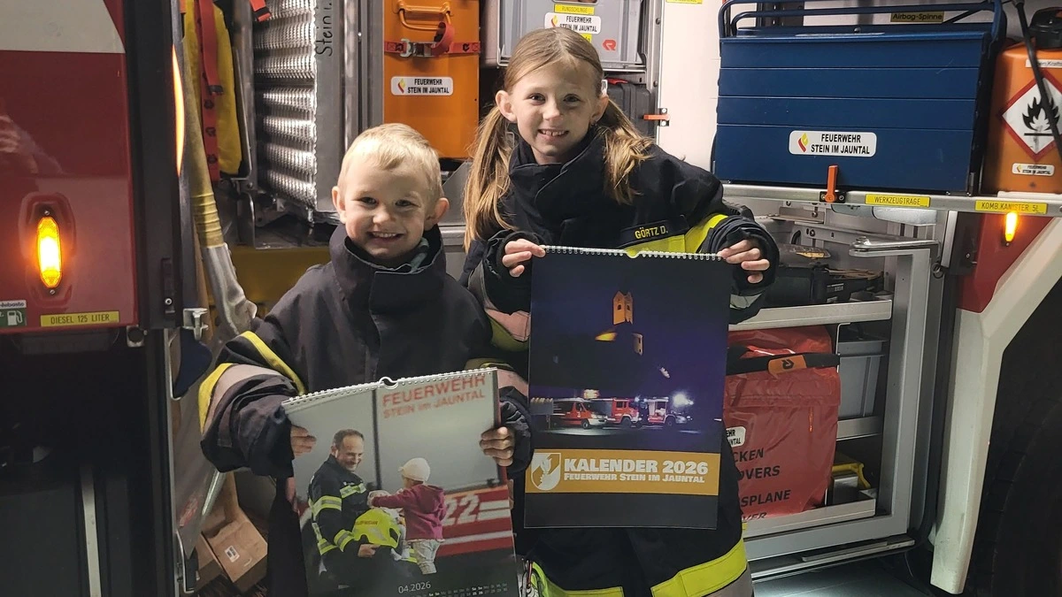 Die Feuerwehr Stein im Jauntal präsentiert ihren neuen Jahreskalender, der auch in diesem Jahr durch die Teilnahme von Kindern der Feuerwehrmitglieder bereichert wird.