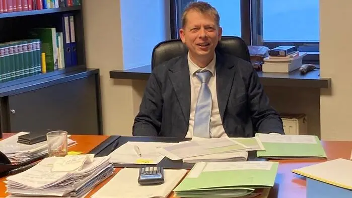 Ein Mann an seinem Schreibtisch, auf dem Akten liegen | Die Bestellung des 53-jährigen Georg Nießner zum Notar durch die Justizministerin steht noch aus