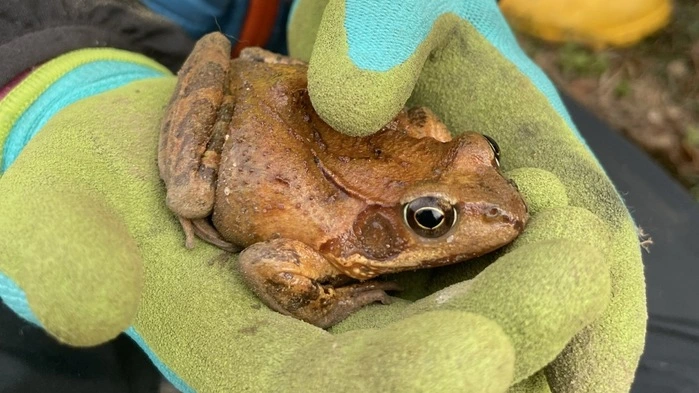 Schulkinder aus Edling bei Kühnsdorf helfen erstmals bei der Aktion „Rettet die Frösche“ mit und bringen Amphibien in Ratschitschach sicher über die Straße.