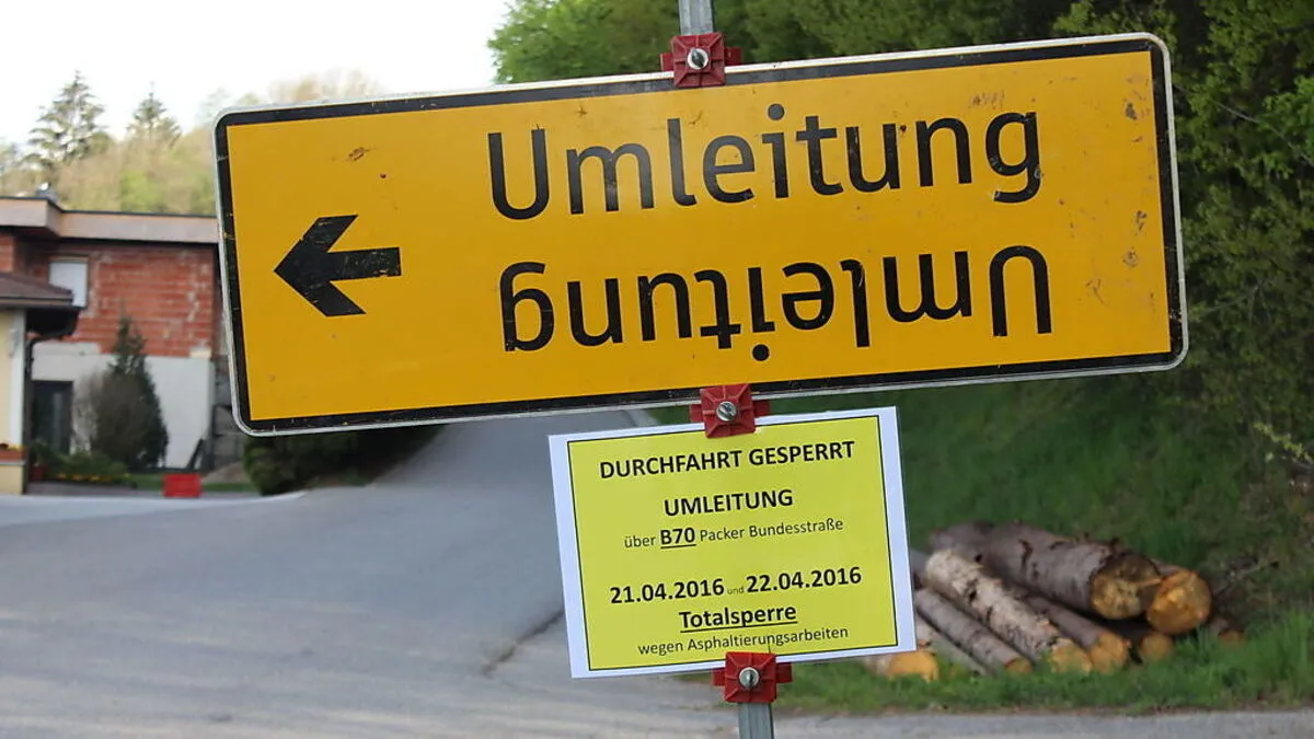 Von Donnerstag bis Freitag ist die St. Michaeler Gemeindestraße gesperrt. Umleitung über Packer Bundesstraße.