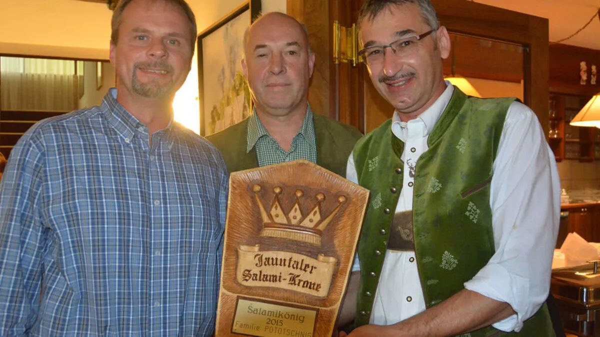 Mit regionaler Kulinarik und zünftiger Musik übergab die Familie Pototschnig ihre Salamikrone.