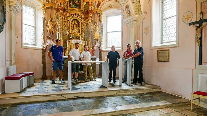 In einem Projekt des Lehrbauhofes wurde der Altarraum der Wallfahrtskirche auf dem Lisnaberg neu gestaltet. Am Sonntag wird der neue Altar geweiht.