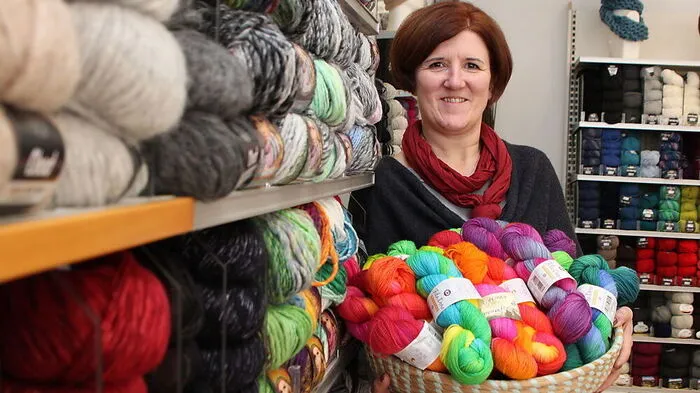 Elisabeth Münzer-Kueß ist mit ihrem Geschäft in die Münzgasse in Völkermarkt umgezogen. Sie strickt auch Hauben, Ponchos und Schals nach Wunsch.