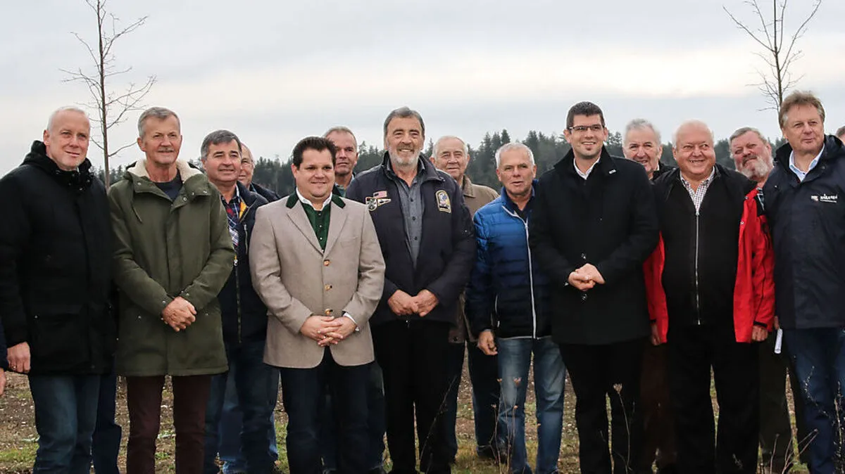 Grundbesitzer, Politiker und Vertreter der Agrarbehörde bei der Feier