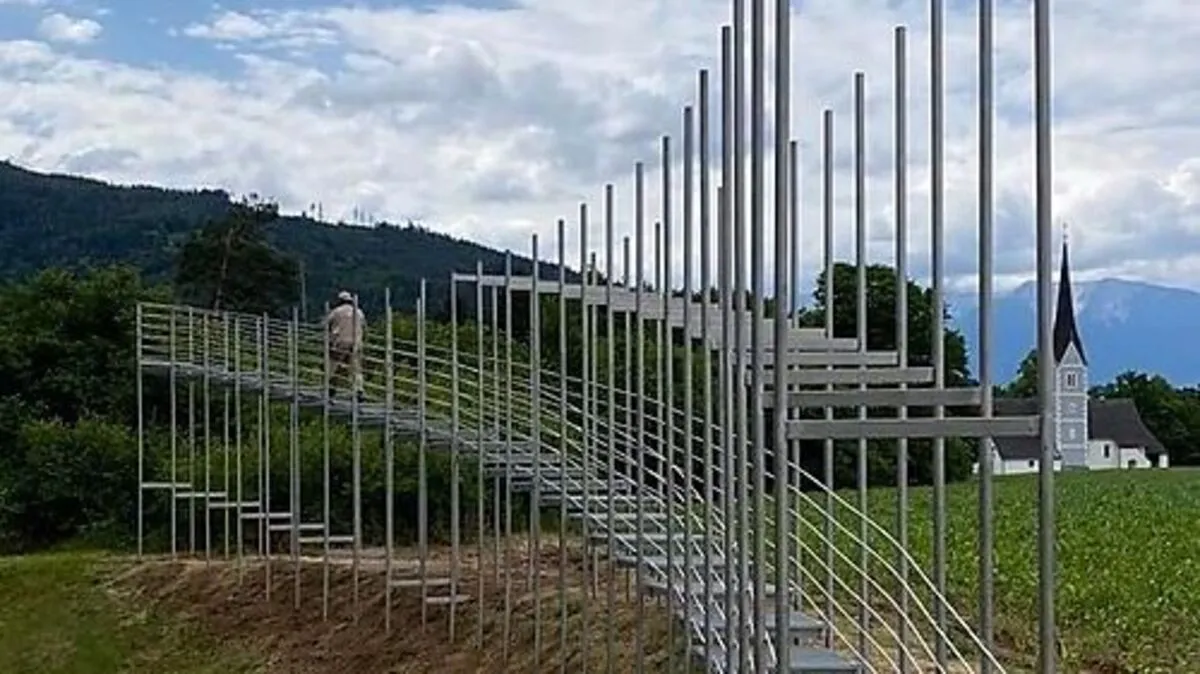 Das fünf Meter hohe Kunstwerk neben der Hängebrücke St. Luzia in Bleiburg wird am Donnerstag von Landesrat Sebastian Schuschnig eröffnet.