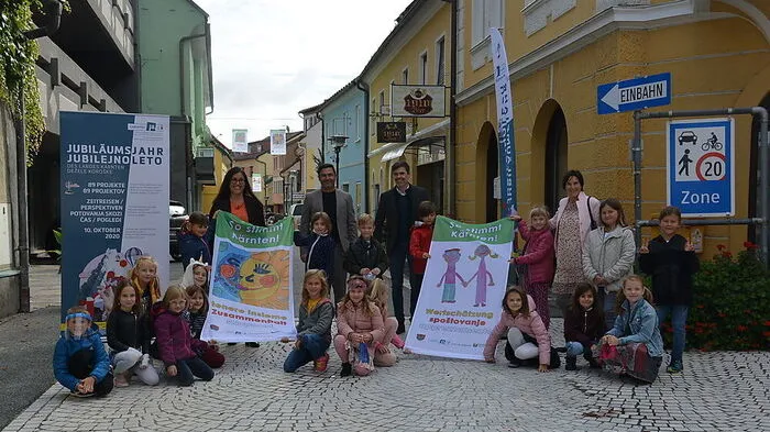 Im Rahmen von CarinthiJa 2020 haben die Schüler der Volksschule Völkermarkt ein Projekt mit dem Thema „Völkermarkt 2020 – Quo vadis?“ erarbeitet. Bis zum Advent schmücken die Fahnen die 10. Oktoberstraße.