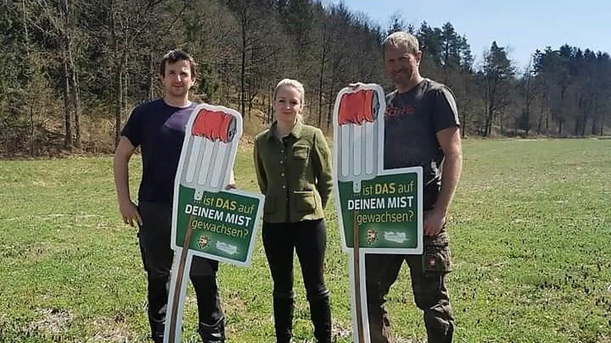 "…ist das auf deinem Mist gewachsen?" Ein 1,60 Meter hoher Aufsteller mit diesem Spruch, soll die Bevölkerung auf achtlos weggeworfenen Müll aufmerksam machen. Kathrin Kogoj und Florian Stürzenbecher aus dem Bezirk Völkermarkt animierten betroffene Landwirte aus allen 13 Völkermarkter Gemeinden solche Schilder wirksam zu positionieren. Mittlerweile stehen bereits 70 Schilder auf Wiesen und Äckern und 30 weitere folgen. "Durch unsere eigenen Wiesen bei Eisenkappel führen zwei Wanderaufstiege und hier spüren wir selbst die Belastung des achtlos weggeworfenen Mülls", erzählt Kogoj.