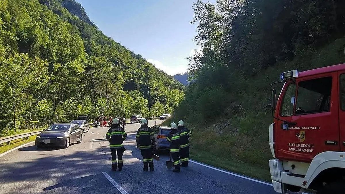Am Freitag gegen 17.30 Uhr fuhr eine 40-jährige Frau aus dem Bezirk Völkermarkt mit ihrem Motorroller auf der Seebergstraße (B 82) von Miklauzhof in Richtung Bad Eisenkappel. In einer unübersichtlichen Rechtskurve rutschte das Hinterrad des Rollers weg. Die Frau konnte den Roller zwar stabilisieren, stieß aber mit dem Vorderrad gegen den entgegenkommenden Pkw eines 21-jährigen Mannes aus dem Bezirk Horn in Niederösterreich.