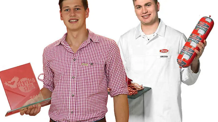 Karriere mit Biss: In den sechs Verarbeitungsbetrieben der TANN kann man auch Lehre mit Matura machen. Hannes Grießer und Christoph Prügger sind auf den (Fleisch-)Geschmack gekommen.