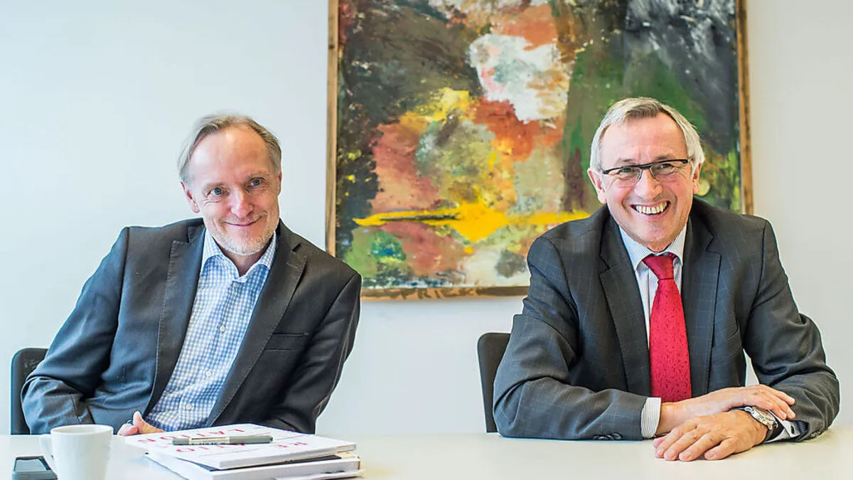 Die Geschäftsführer der FH Joanneum, Rektor Karl P. Pfeiffer und Günter Riegler, sind stolz auf das Erreichte. Von Norbert Swoboda