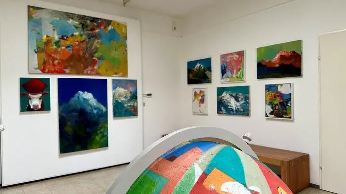 Ganz real scheinen diese schneebedeckten Gipfel, die in einen tiefblauen Himmel ragen oder die rostbraune Bergkette, die sich vor einem grünen Firmament schlängelt. Auch glauben wir sofort, dass die Kuh mit dem unverfrorenen Blick und einer Mitra als Kopfbedeckung von den Bauernkindern einen klingenden Namen bekommen hat. Und die aus gefundenem Wellblech bestehenden Behausungen für arme Menschen in Brasilien, sogenannte Favelas, die Klammer aus Kartonagen und Verpackungsmaterial nachgestellt hat, sind ebenso existent. Dennoch entspringen diese Darstellungen der Erinnerung des Künstlers und sind somit ein Abbild der Wirklichkeit, eine Interpretation – und einen Schritt weiter gedacht, sogar eine Abstraktion.