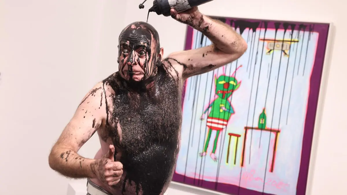 Alf Poier sorgte bei seiner Buchpräsentation in Wien für eine kleine Eskalation - und schwarze Farbe spielte dabei eine wesentliche Rolle.