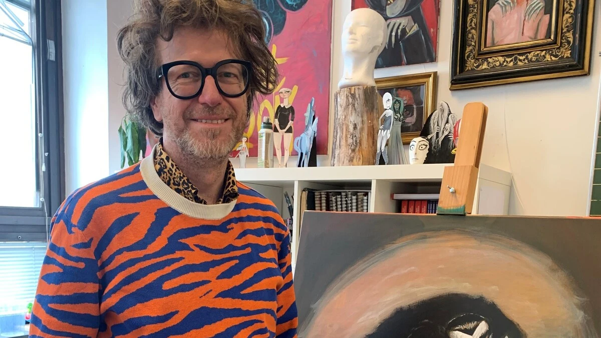 André Breinbauer in seinem Atelier: Sein Vampir Fürst ist auch hier allgegenwärtig