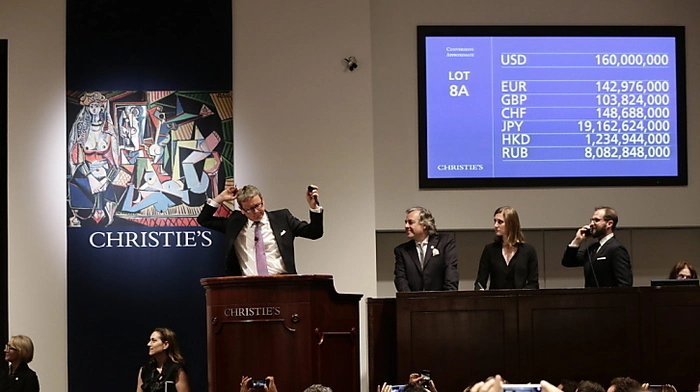 Das Ölbild "Die Frauen von Algier" von Pablo Picasso erzielte 160,92 Millionen Euro und ist damit das teuerste jemals versteigerte Gemälde. Den neuen Höchstpreis einer Statue erzielte der "Zeigende Mann" von Alberto Giacometti mit 126,82 Millionen Euro.