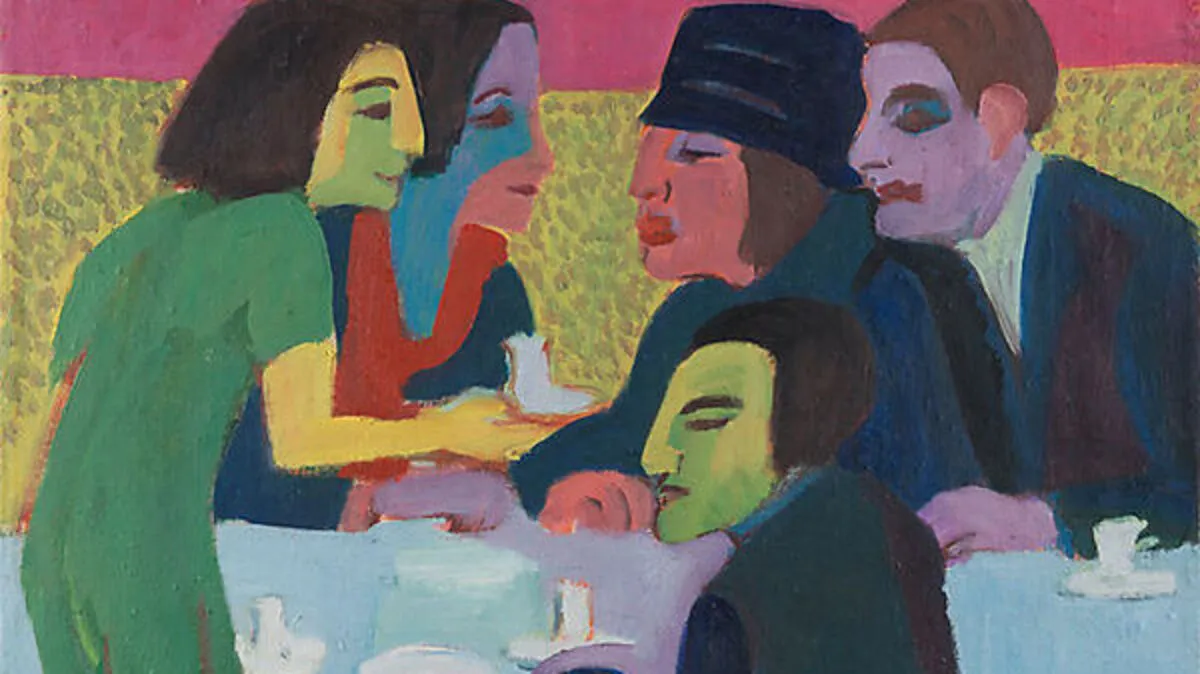 Das expressionistische Gemälde zeigt eine Szene in einem Café und war auf denselben Rahmen gespannt wie das Bild "Schlittenfahrt im Schnee" - wurde von diesem aber verdeckt.