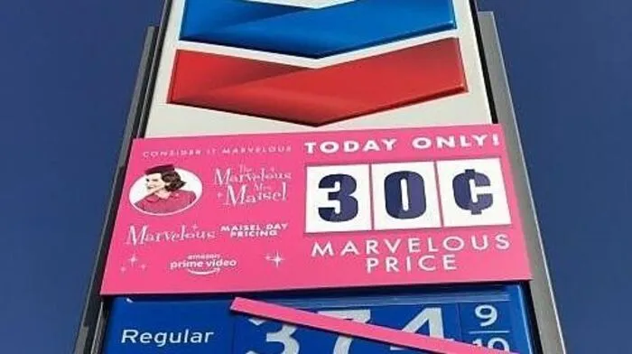 Schräge Werbeaktion: Um die Werbetrommel für die Serie "The Marvelous Mrs. Maisel" zu rühren, verkaufte Amazon Benzin zu Preisen wie in den 1950ern.