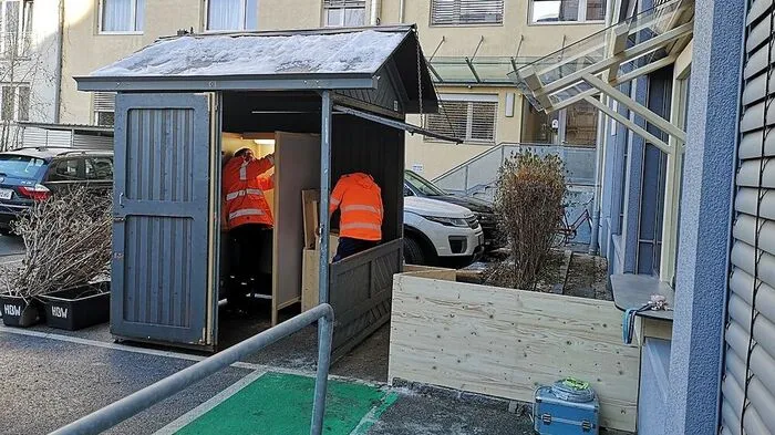 Erstmals gibt es in Klagenfurt eine Außen-Wahlkabine (im Innenhof des Amtsgebäudes Kumpfgasse)