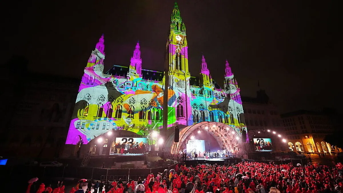 Die 73. Wiener Festwochen wurden am Freitagabend auf dem Rathausplatz als Fest der Vielstimmigkeit und vielen Sprachen eröffnet. Das Publikum trotzte gut gelaunt dem Regen.