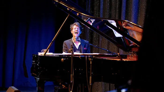 Simon Stadler hält die Musik von Udo Jürgens hoch.