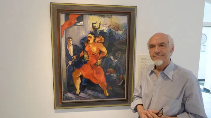 Werner Lexen vor Maximilian Florians bekanntestem Werk „Revolution“