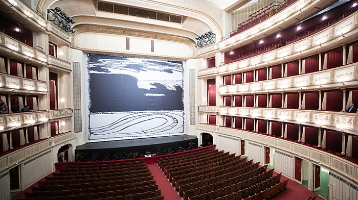 "Loin d'ici" heißt das neue Kunstwerk, das in der aktuellen Saison 2018/19 den Eisernen Vorhang der Wiener Staatsoper ziert. Ein Blick in die Ferne, ein Meer in Schwarz-Weiß. Der belgische Künstler Pierre Alechinsky hat die 176 Quadratmeter Fläche im "schönsten Bilderrahmen der Welt" gestaltet, wie Staatsoperndirektor Dominique Meyer bei der Präsentation am Freitag sagte.