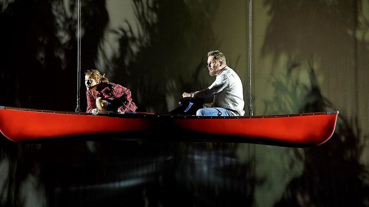 Die Tochter aus einer jüdischen Familie besucht die Heimat ihrer Vorfahren. Mit ihrem Freund Peter unternimmt Lea aus New York eine Flussfahrt entlang eines als Donau erkennbaren Stroms, der sich durch eine braune Landschaft wälzt. Heimattümelei, der Hass auf alles Fremde sind hier so lebendig wie zu den finstersten Zeiten. Der daherschwadronierende Komponist Krachmeyer ist ein Salonfaschist, der Richard Wagner im Munde führt. Burschenschafter stimmen auf einer Hochzeitsfeier das Vorspiel zu den „Meistersingern von Nürnberg“ an, Populisten und Honoratioren sind als Wiedergänger der mörderischen Ideologie leicht zu identifizieren. Die sich allzugern der Verführung hingebende, verdummte Volksmasse verwandelt sich in Karpfen. Das symbolische Bild und der Befund sind eindeutig: es fischelt geistig. Komponist Johannes Maria Staud und Librettist Durs Grünbein treten in große Fußstapfen. Die satirisch-abgründige Gesellschaftsanalyse hat in Österreich Tradition, nicht nur Thomas Bernhard hat gezeigt, wie man Groteske, Analyse und politische Mahnung vernäht. Gemessen an solchen brillanten Überzeichnungen ist Durs Grünbeins Text plump. Obwohl von allerhand Natursymbolik durchtränkt, bleiben „Die Weiden“ bis zum Ärgernis unsubtil.